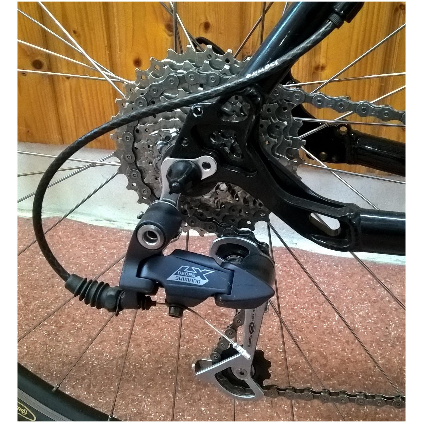 Deore LX hátsóváltó, Deore elsőváltó, Deore agyak, Deore váltókarok(3*9) Shimano FC-M440 hajtómű(44/32/22), Promax V-fék, Continental Double Fighter II (37-622) külsők.